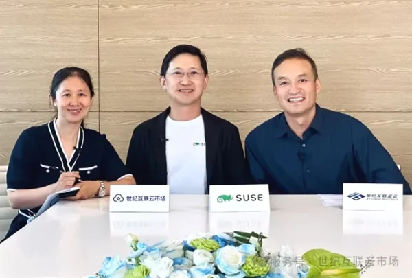 世纪互联云市场自6月20日正式上线后,迎来了首批重要ISV伙伴——全球企业级开源解决方案领导者SUSE的入驻。近日SUSE大中华区总裁 Alan Chan 做客“云市场会客厅”,与世纪互联集团副总裁、蓝云微软业务总经理胡伟,蓝云产品总监Anna Qiao共话合作愿景,双方围绕基础设施、企业级云服务、开源AI平台及生态共建展开战略协同,共同推动一站式服务矩阵和解决方案落地,为中国企业数字化转型提供更强动力。